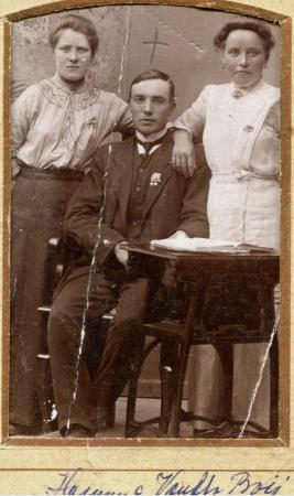 | Bröllopsfotografi taget mellan 1905 och 1910, av familjen Smeds. Johannes, Vendla och hennes son Einar. | 1905-1910 |