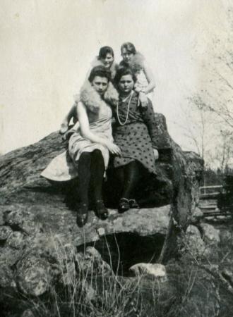| Fotot taget vid "Villis". Sex unga damer avslappnat glada i solens sken. | |