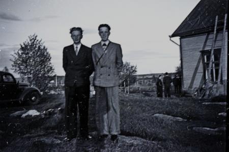 | Eugen Forth och Folke Smeds på gårdsplanen vid Jan Österholms gårdstun. | |
