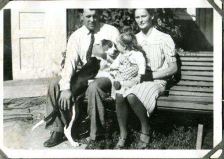 | Fotografi från trettiotalet. På bilden Elsa och bondgården. | |