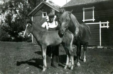 | Emil rodas med sto och föl på gården vid "finnas" | |