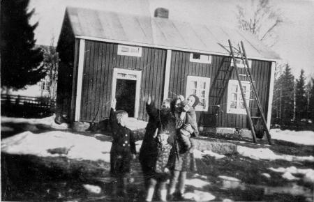 Abraham kallades allmänt för "Torparis-Abbin". Namnet fick han av att deras stuga i Näsbacken var ett torp under hemmanet Rodas. "Abbin" beredde fårskinn vintertid och var fiskare på Bolot sommartid, bärgade fräken på Fladan för sina husdjur. Han var gift två gånger. Andra gången med Sofia, född Sebbas från Petalax. I det äktenskapet föddes sju barn. Helmi, Runar, Gunnar, Uno, Verner, Hjördis och Anders "Endro". På bilden dottern Helmi gift med August Glasberg från Kalvholmen med fyra av sina sex barn.