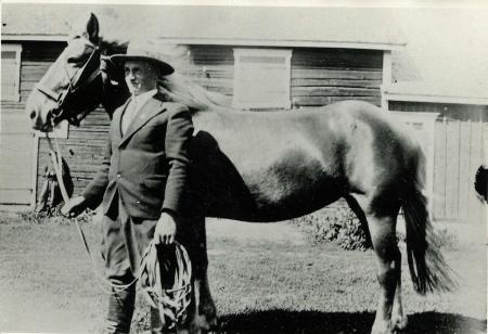 Fotograferad på gårdsplanen vid "Tettis". Erik gifte sej med Alice Storgård från Runsor och flyttade till hennes hemgård. Äktenskapet blev barnlöst.