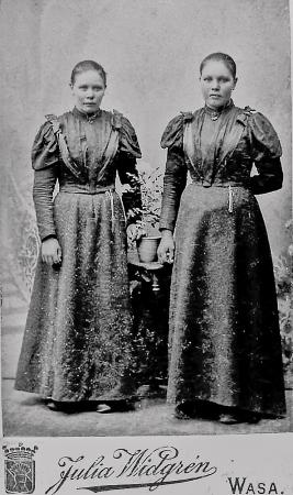 Systrarna Maria Martin (gift) Nedermo och Matilda Martin (gift) Enegren vid Fotoateljé Julia Widgren i Vasa.