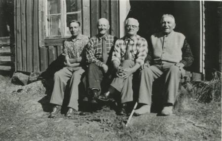 Villan byggdes av "Lill-Janne", farfar till Valter och användes som fiskarstuga på Bolot. Från vänster: Valter Rodas född år 1913, Einar Rosendahl "Haga-Einar född år 1897, August Kronberg, fosterson hos Valters morföräldrar Gustav och Ulrika Forth. August Kronberg, född år 1891, reste till Kanada kring 1910-talet och besökte hemlandet första gången i början av 1960-talet. Längst till höger Valters far, Johannes Rodas född år 1876. August Kronberg reste till Kanada efter att ha blivit försmådd i sitt frieri till en Tölbyflicka. Detta enligt muntlig tradition.
