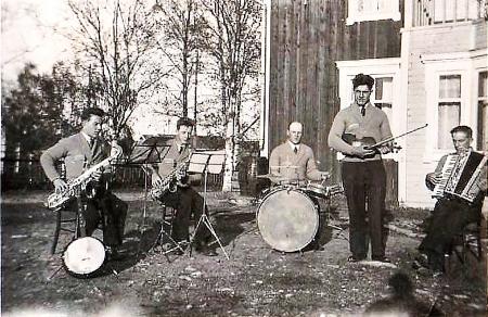 Medlemmar från vänster: Georg Sandelin saxofon, Jarl Smeds klarinett och saxofon, Paul Smeds trummor, Bertel Strandén fiol och Valter Berg dragspel. Georg Sandelin var gift med Sylvi Svarfvar, "Nesas-Sylvi" från Tölby. Georg var född i Voitby men flyttade till Tölby i och med äktenskapet med Sylvi. De övriga i orkester var Solfbor.