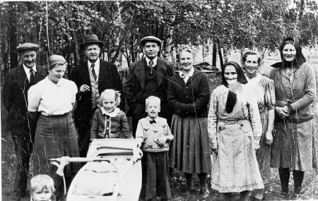 Släktsamling vid "Jåfs-Simos" sommaren 1950