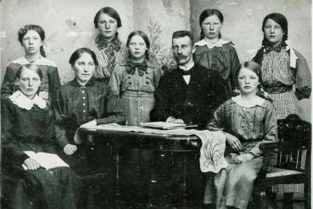 Lärare Axel Emil Sjöberg, född 1875 i Sideby var lärare i Tölby-Vikby folkskolsdistrikt åren 1897-1921. Efteråt flyttade han till Karkmo folkskola. Här är han fotograferad med sin kollega Anna Franzén, född 1890 i Vasa, biträdande lärarinna vid Tölby-Vikby folkskola åren 1912-17.