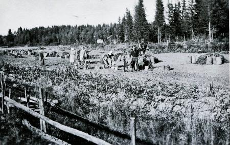 Fotografi av talkoarbete och potatisupptagning hos Evert Påfs.