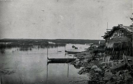 Den vackra Bolot-bilden är från början av 1930-talet, med de flatbottnade ekstockarna så kallade "öitjor" med fören mot land och "painon" säkert nedtryckt i aktern. .