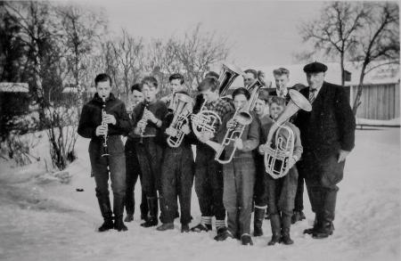 Från vänster på fotografiet: Jan Österholm, Kjell Sjöblad, Jan Michael Thölix, Yngve Snickars, Lars Erik Aura, Per-Olav Kvist, skymd med bastuba Kjell-Erik Backman, Björn Majors, Christer Smeds, Roger Thölix, Stig Helgas. Längst till höger ledaren John Båsk (Jocke) från Solf. På bilden en okänd pojke. Bjarne Smeds saknas.