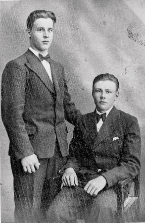 Stående på fotografiet: Sven-Erik Thölix född år 1918, son till Arvid och Edit Thölix. Edit var född Båsk i Solf. Sittande på fotografiet: Evald Forth född år 1912 och död år 1940, son till Erik och Edit Forth f. Klockars i Höstves.