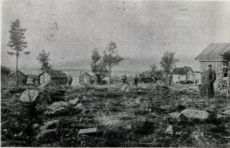 Husen från vänster: båthus med halmtak. Sofia och Mria Rodas fähus. Johannes Borgars, Fassis Jussas, båthus. Kristian och Vendla Enholms båthus. Isak Forth (Haga Isakas) stuga, senare såld åt Emil Korvo, fosterson åt Karolina och Israel Staaf. "Korvos Emil" bodde på Vasklot och i Rytilaakso. Johannes Forths stuga (Haga Hannes). Längst till höger läraren A. E. Sjöbergs villa.