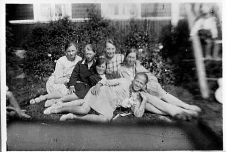 Från vänster Svea Forth, Siri Backman Elvi Boij, Saida Backman och i mitten liggande Ingrid Forth och hon längst framme okänd.