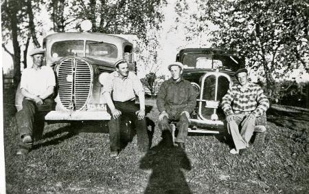 På den andra sidan av fotografiet är en 5-personers bil av märket Oakland M/30. På Oaklandens kofångare sitter dess ägare Harald Martin, född år 1914, och Jarl Martin, född år 1927. Oaklanden är omgjord till en 2-personers hytt med ett litet lastflak bakom hytten.