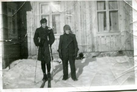 Skidtur till Öjberget. Till höger Alf Granholm.