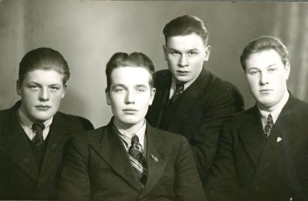Från vänster Birger Påfs,okänd, Arne Thölix och Hilding Sand från Helsingby. ,