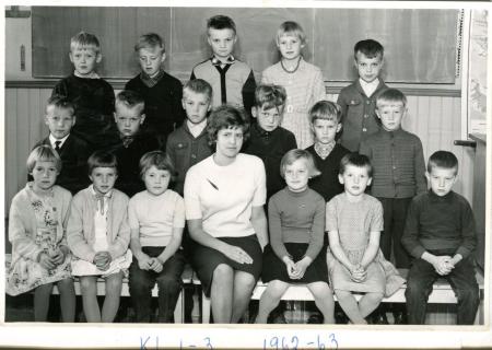 Tölby-Vikby skola läsåret 1962-63, klasserna 1-3. Rad 1 överst, Erik Skoglund, Rune Smeds, Sven Nordlund, Elisabeth Martin, Stefan Thölix, Rad 2, Johnny Ribacka, Stefan Holm, Peter Thölix, Kurt Påfs, Leif Rosendahl, Henrik Schöring. Rad 3, Bernice Kloo, Marlene Renfors, Britt-Mari Granholm, Marianne Thölix, Helena Skoglund, Manne Södergård. Lärare Ingeborg Suni