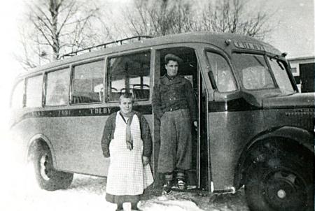 | Emil med sin buss av märket Volvo. | 1935-1939 |
