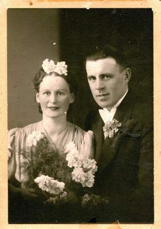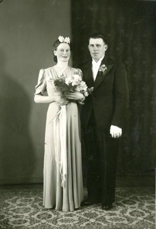Anna-Liisa och Emil Rodas Tölby. Bröllopsfoto Anna-Liisa född Toikkanen i Karelen och Emil Rodas från Tölby. Paret fick dottern Sig-Britt 1941. I slutet av 1940-talet byggde de egnahemshus vid "Krypis" i Tölby