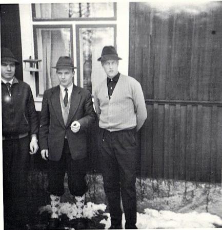 | Tre stiliga ynglingar från Tölby. Från vänster Nils-Erik Näs f. 1938, hans bror Karl-Johan Näs och Elof Rosendahl. f. 1937 | |