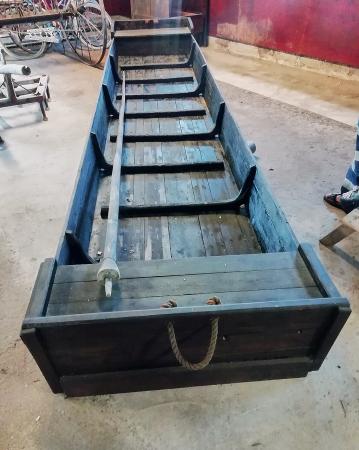 Ekan, "öijtjon", är ca 5 meter lång och knappt 1 meter bred. Den är tvär i båda ändarna vilket var typiskt för ekorna på Bolot. Med en fork stakade man sig framåt i de grunda fladorna delvis bevuxna med vass och säv. På bilden syns "forken" med den koniskt täljda ändan som man tryckte ner i bottnen och drev på så sätt ekan framåt. Varje fiskare, "bolotbo", hade flera ekor i olika storlekar. Den mindre ekan var tvär endast i bakstammen och kallades "sköttanöijtjon"