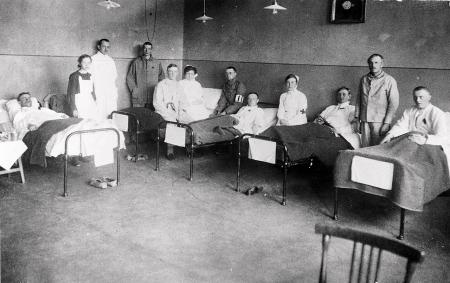 fotografier, finska inbördeskriget, sjukskötare, sjukhus, värnpliktiga, sängkläder, sängar, militärpersonal, fotoalbum, fältsjukhus