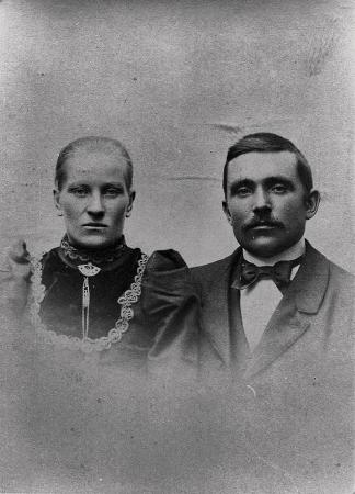 Fotografi av Alina och Johannes Rodas från 1910-talet vid en fotoateljé.