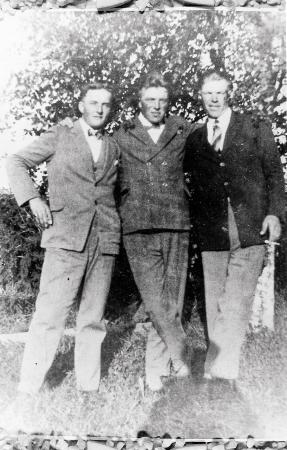 Fotot taget i slutet av 1920-talet med fr. v. Nestor Granholm "Lillsto-Nestor" f. 1906, August Svarvar eller Smeds "Greddjus-Gust" f. 1903 och Verner Svarvar " Greddjus-Verner f. 1901. Verner flyttade till Mutta och byggde sin gård där och kallades därefter "Mutta-Verner".