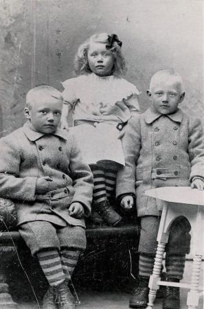 Bröderna klädda i av sin mors vävda och sydda vadmalsrockar med korta byxor. Ullen av gårdens egna får, av mor kardade, spunna och stickade tvärrandiga ullstrumpor. Siri finklädd även hon med ullstrumpor och alla tre med köpta skor. --Föräldrar: Johannes Thölix 1881-1941 och Alina född Forth 1882-1951. Erik,1911-1942, gift med Alice Ingeborg Storgård, 1911-1996, från Runsor. Bertel ,1912-1988, gift med Helmi Irene Björklund 1911-1983, från Mobacken i Solf. Siri 1914 -1982, gift med Runar Backman ,1907-1989, i Tölby.