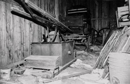 Brandsprutan drevs med handkraft. Finns bevarad i mangelhuset.