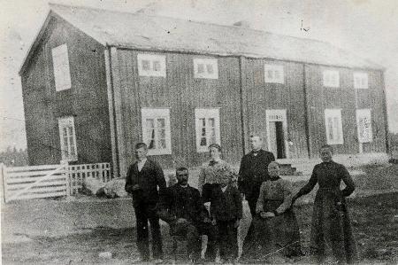 Sittande husbonden och nämndemannen Johan-Erik Forth 1850-1924. Hustrun Mathilda född Sabel 1856-1947. Stående fr. v. Herman 1888-1980, dottern Alina 1882-1951 gift Thölix, sonen Johannes 1886- 1948, dottern Anna 1880-1937. gift Kull ,sonen Erik 1884- 1955 i Amerika åren 1900-1905, Denna del av Forth nr 12 flyttad på 1770-talet från bykärnan till denna plats på Näsbacken. Hemmanet i Släkten Forths ägo sedan 1608. Boningshuset ombyggt 1910 med fråntar och var gammalt redan då och hade nävertak som av bilden synes. Gården nedriven 1973 och flyttad till Helsingby där den återuppbyggdes av Erik Forths dotterson Johan-Erik Kull.