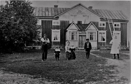 Från vänster på fotografiet: husbonden Johannes Rodas född år 1889, sonen Erling född år 1920, Husmor Josefina född år 1885, med sonen Erik född år 1922 i famnen, sonen Emil född år 1912 samt dottern Elin född år 1909. Dottern Estrid föddes ett halvår efter fotograferingen. Bondgården är byggd i slutet av 1880-talet av en måg i gården, Vilhelm Zackrisson Borgar. Farstukvisten byggd i början av 1920-talet. Den äldsta kända bonden på detta stomhemman Ehn nr 2 Jakob Eriksson. Han var redan skriven som skatteskyldig i Gustav Vasa jordebok. 1530 och kvarstod ännu 1592. År 1561 hade han sju kor jämte ungnöt i ladugården, en häst samt får och svin. Vid jordrevningen 1608 blev hemmanet Ehn åsatt över ett helt mantal i skattehänseende, ett av de största i byn. hemmanet var i samma släkts ägo ända till stora ofreden 1713, då Johan Markusson Ehn , hans hustru Karin, barn i olika åldrar jämte dräng och piga försvinner ur längderna, för att ej återfinnas på gården efter freden i Nystad 1721. I stället är en främling Per Ersson jämte hustru år 1724 antecknade som husbondefolk på Ehn hemman . Då han tydligen haft svårigheter att sätta hemmanet i skattedugligt skick överlät han år1734 halva hemmanet åt sin dräng Erik Olofsson, som då redan tydligen med familj bodde på hemmanets marker. Gårdens senare öden och brukare från år 1742 intill våra dagar framgår ur det "släktgårdsdiplom" Estrid Rodas erhöll 1986 efter det denna del av hemmanet Ehn de senaste åtta generationerna eller under mer än 260 år varit i Estrids föregångares ägo.