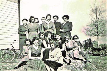 Längst framme sitter Doris Enegren gift Påhls och Gunnel Granholm (g. Fant i Kanada), Bakom dem sitter fr .v. Elvi Lall (Rodas), Greta Smeds (Krooks), Sig-Britt Kull (Näsman), Kerstin Smeds (Bengts), Sonja Martin (Bagge) och Doris Thölix (Johansson). Stående i första rad Birgit Svarfvar (Österholm), Kursledaren Ester Häggqvist, Valdine Svarvar (Back), Bakom dem står Elin Rodas (Österholm), Evy Backman (Thölix), Eva Glasberg (Nyman), och Anna-Liisa Rodas född Toikkanen.