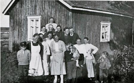 Främre raden från vänster: Arne Smeds, född år 1911. Vivi Forth, född år 1905. Elin Österholm, född år 1909. Ellen Forth, född år 1902. Gerda Enegren, född år 1903. Robert Forth, född år 1910. Rosa Forth, född år 1903. Ulla Forth, född år 1870. Ensio Elfström, född år 1916.