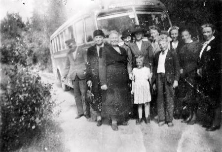 Fotografi av en Tölby grupp av resenärer på utfärd till Petsmo under tidigt 1950-tal.