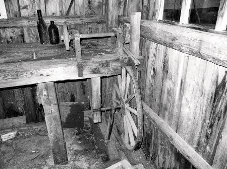 Pedalen under bordet på fotografiet agerade och agerar som motor för smirgeln. Pedalen är kopplad via ett hjul med en rem som gör att smirgeln snurrar. När pedalen användes så snurrade slipstenen ovanpå bordet (smirgeln), och då kunde man slipa med smirgeln.