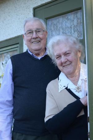 Eugén 1924-2017 och Lisa Forth, 1924-2020, jordbrukare i Tölby. Paret fick två döttrar, Elsbeth och Åsa-Britt. Eugéns föräldrar Herman och Ann-Sofi, Lisa född i Petalax, föräldrar Nestor och Elsa Bäck. Fotot taget vid deras bostad i Tölby.