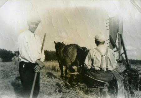 Tvåhästars självavläggare. på sitsen Runar Backman, stående till vänster Lauri Yli-Poti.