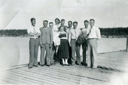 Identifierade, tredje från vänster John Thölix, tredje från höger Emil Rodas, till vänster om honom Runar Backman och längst till höger Erik Thölix (ev)
