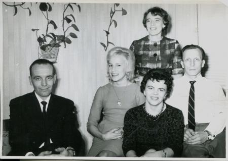 Sittande Valter Boij, hans syster Margit gift Sjöblom och hustrun Gunhild. Stående damen okänd och mannen till höger även han okänd