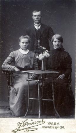 Stående Erik Boijer, sittande till vänster Ester Enegren gift med Algot Påfs och till höger Maria Fred.